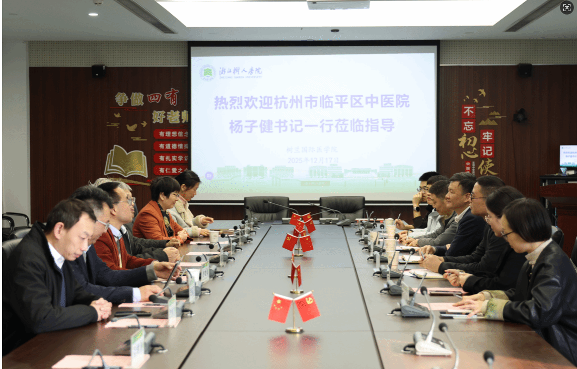12月17日下午,杭州市临平区中医院杨子健书记一行来访树兰国际医学院,在图信楼615会议室举行了交流合作座谈会。参加座谈会的有杭州市临平区中医院党委书记杨子健、副院长王建定,以及科教科、医务科、护理部、检验科和信息化管理中心负责人;树兰国际医学院和树兰(杭州)医院的陈慰浙、吴章穆、姜敏敏、冯志仙、蒋国平、徐晓玲、尹杉杉、寿鑫,以及各系部、实验中心、教研室负责人。座谈会由姜敏敏主持。首先,陈慰浙院长、吴章穆书记分别代表树兰国际医学院和树兰(杭州)医院对杭州市临平区中医院各位领导和专家的到来表示热烈欢迎。随后,三方围绕医教融合、临床教学、科研合作、信息化建设等议题进行了坦诚而深入的交流。双方一致认为,加强医院与医学院之间的合作,是推动医疗服务质量提升、医学人才培养模式创新、科研水平提高的重要途径。未来,将在中医临床教学基地建设、师资共享、学生见习实习、医务人员培训、科研合作等方面开展务实合作,共同打造医教协同发展的示范平台。最后,与会人员参观了全省人工器官与计算医学重点实验室、转化医学研究院、护理实训室等医学院实验教学中心。此次座谈有力推进了杭州市临平区中医院、树兰国际医学院和树兰(杭州)医院进一步深化合作,在医教融合、人才培养、协同发展方面迈出了坚实的一步。